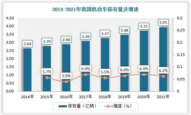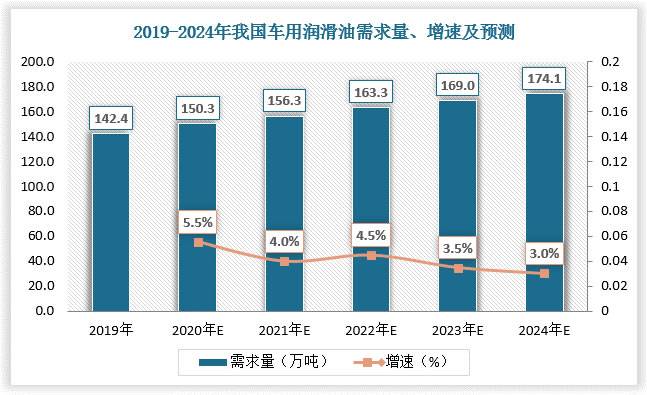 数据显示,2019年,我国机动车保有量为3.72万辆,车用润滑油需求量约为150.3万吨;2021年,我国机动车保有量为3.95万辆,车用润滑油需求量约为156.3万吨。