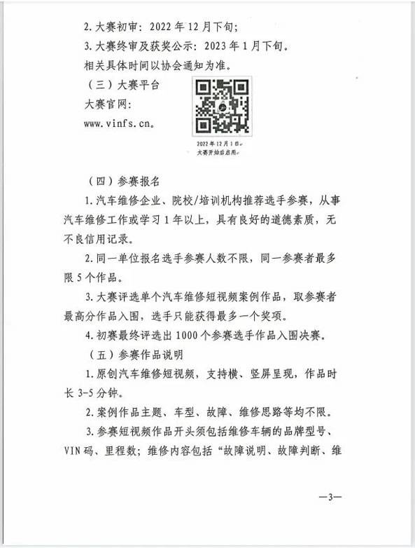 3.大赛评选单个汽车维修短视频案例作品,取参赛者最高分作品入围,选手只能获得最多一个奖项。
