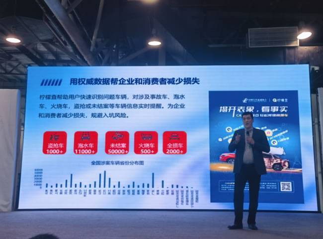 柠檬查总经理邓羽分享了二手车信息不对称导致的经营风险,以及消费者权益的损失。他表示,柠檬查能够帮助用户快速识别问题车辆,对涉及事故车、泡水车、火烧车,盗抢或未结案等车辆信息实时提醒。为企业和消费者减少损失,规避入坑风险。