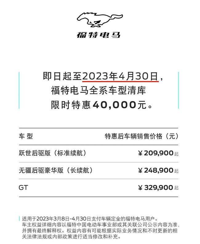 消息人士称,在惨痛的现实面前,福特采取了断然措施。3月8日第二次宣布大降价时,福特电马打出了“全车系清库”口号。在那个时间点之前,裁撤团队的决定已经做出。