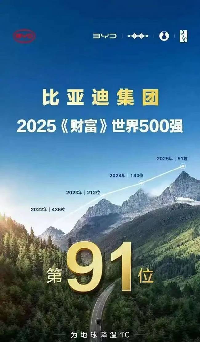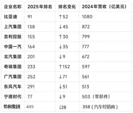 7月29日,《财富》2025年世界500强榜单正式揭晓,全球汽车产业格局呈现出剧烈洗牌态势。在整车企业领域,中国军团创纪录地占据10个席位(含零部件企业),其中比亚迪以火箭般的速度跃升52位,首次跻身全球前100强(第91位),历史性地超越特斯拉(第106位)。