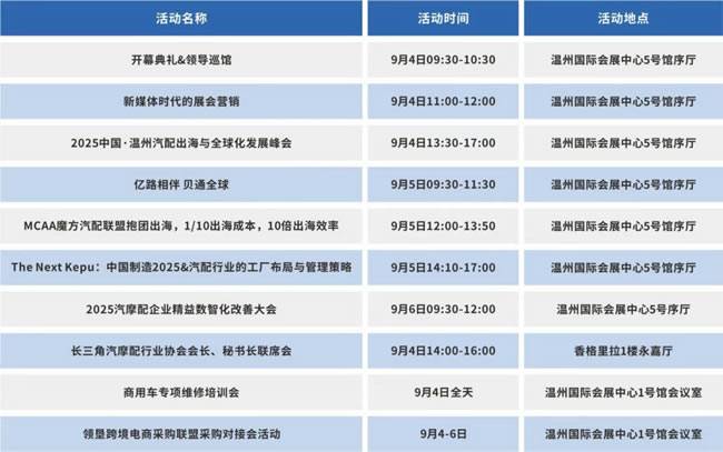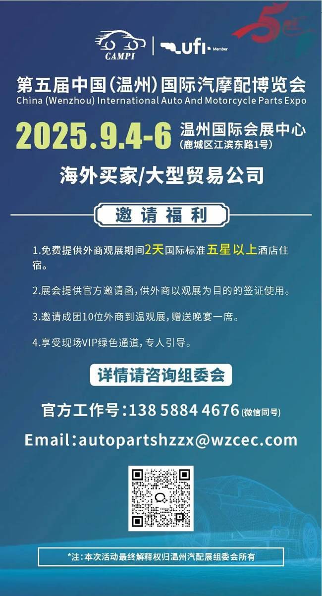第五届温州国际汽配展将于 9 月 4-6 日在温州国际会展中心盛大启幕!展会汇聚 1500 + 优质展商,展览面积达 40000㎡,预计吸引 30000 + 专业参观人次。为帮大家高效逛展,下面这份详尽观展攻略千万别错过!