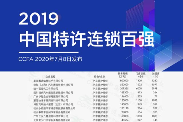 【2019中国特许连锁百强榜单发布,后市场11家企业上榜!】