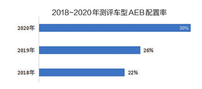 在车辆辅助安全方面,近两年进步也很快。2020年测评车型获得良好及以上占比达100%,在测评的23款车中,有22款配置了前方碰撞预警系统(FCW)/自动紧急制动系统(AEB),配置率达到96%;其中有9款车型更是全系标配FCW/AEB,标配率达到39%,同比提升13%,可见车企日益重视车辆辅助安全问题。