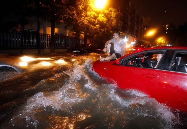 7、如果车辆已经被泡在水里(水面超过车轮一半高度),建议放弃驾车出行。