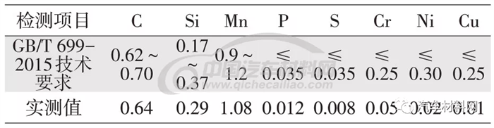 对零件取样,利用ARL3460型直读光谱仪进行化学成分分析,结果见表1。可以看出,该零件的各元素含量满足GB∕T 699—2015中对65Mn的技术要求。
