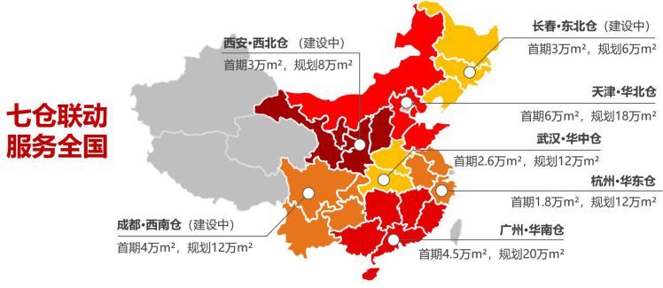 2018年初巴图鲁正式发布七仓联动战略,将华南中心仓成熟的运营模式复制到全国其他区域,以充分发挥覆盖全国的联动效应。一年过去,华东、华中、华北三大中心仓陆续建成并如期投入使用。