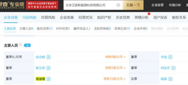 例如,蔚来将于明年四季度量产的ET7,在发布会上蔚来宣称将采用一种半固态电池,容量为150kWh的半固态电池,能够让ET7的续航突破1000km。据天眼查APP查询,蔚来高级副总裁曾澍湘在卫蓝新能源担任董事,所以这项技术有可能来自卫蓝新能源。