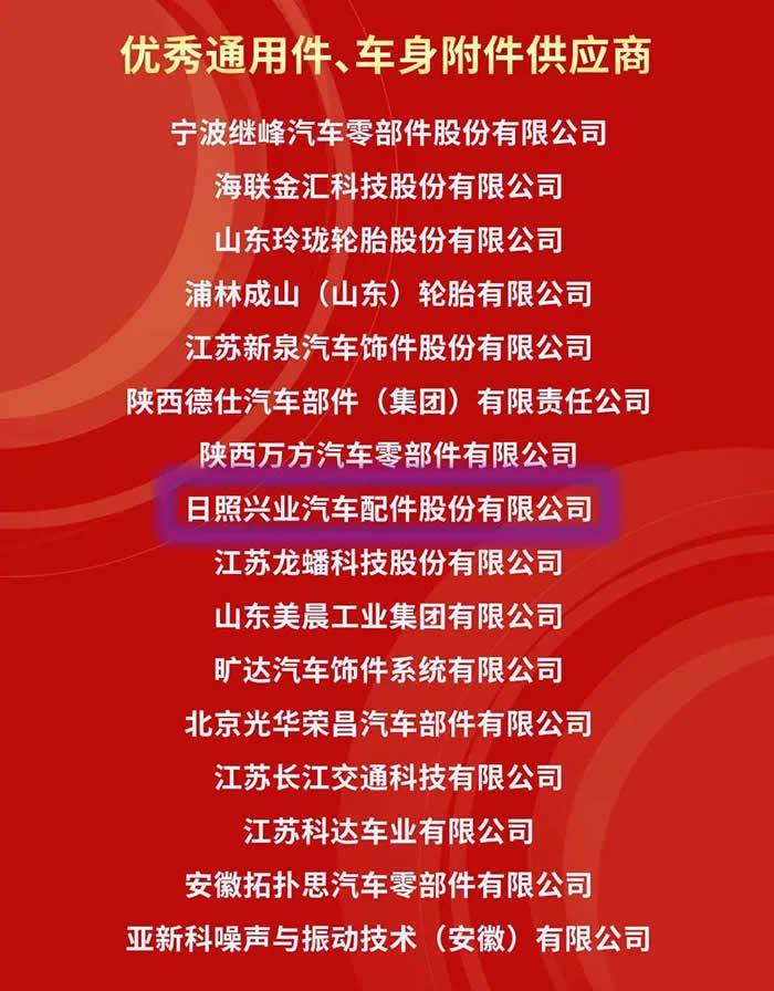 【日照兴业汽配荣获“全国百家优秀汽车零部件供应商”称号】