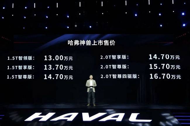 神兽降临,智感觉醒!12月18日,长城汽车哈弗旗下新科技旗舰SUV哈弗神兽在天府之国成都迎来盛大上市,新车将推出1.5T和2.0T燃油版共6款车型,市场指导价区间为13万元~16.7万元,更携七重豪礼为用户带来满满诚意。凭借高阶智能、锋锐造型、越级配置、贴心服务等为用户带来的越级尊享,哈弗神兽在预售阶段就喜迎开门红,斩获超1.2万订单量,在全国范围内掀起火爆提车潮。