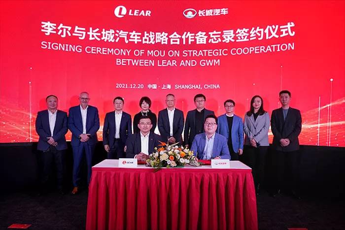 2021年12月20日,李尔与长城汽车股份有限公司(以下简称“长城汽车”)在位于上海的李尔亚太总部签署战略合作备忘录。李尔亚太区座椅业务销售及项目管理副总裁赵兴波(左)和长城汽车高级采购总监牛军辉(右)作为双方代表签约并交换协议。自2019年以来,李尔在座椅和电子电气两大板块下的各个产品线与长城汽车展开了深入合作。在近三年的合作历程中,李尔凭借强大的研发实力、先进制造力和卓越运营力,不断创新突破,成为长城汽车信赖的合作伙伴。