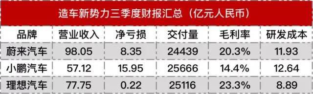 从目前来看,蔚来后市发展虽然还有不确定性,但是已经站住了脚跟。不过,当前的蔚来仍然处于亏损状态,何时实现自我造血仍然未知。据蔚来第三季度财报显示,蔚来汽车第三季度总营收为98.053亿元人民币,同比增长116.6%;净亏损为8.353亿元人民币,与去年同期相比收窄20.2%,与上一季度相比扩大42.3%;归属于公司普通股股东的净亏损为28.589亿元人民币,与去年同期相比扩大140.7%。
