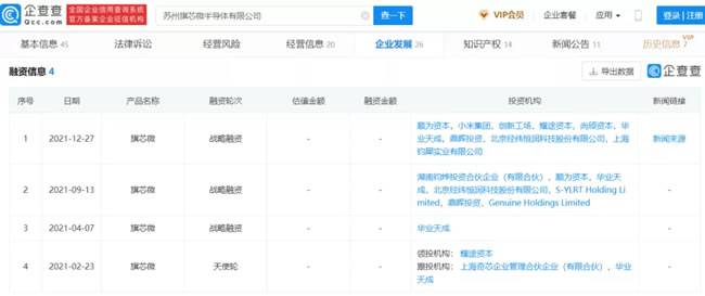企查查信息显示,12月27日,汽车芯片制造商苏州旗芯微完成新一轮融资,投资方包括上汽旗下尚颀资本、小米产投、经纬恒润、顺为资本、鼎晖、创新工场、钧犀资本、华业天成、耀途资本等。据公开资料显示,旗芯微主要从事汽车高端控制器芯片的研发和销售,目标填补国内新一代智能网联汽车控制器芯片领域空白。值得注意的是,这是该公司成立一年来完成的第四轮融资,累计金额已达数亿元。