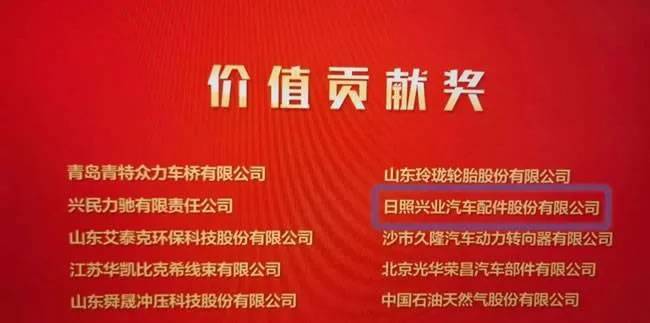 【日照兴业汽车配件股份有限公司获供应商大会最高奖项】