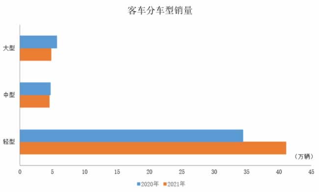 2021年12月,在客车细分品种中,与上月相比,三大类客车品种产销均呈增长,大型和中型客车增速更为明显;与上年同期相比,三大类客车品种产销均呈下降。2021年,在客车主要品种中,与上年相比,大型客车产销呈较快下降,中型客车降幅略低,轻型客车呈快速增长。