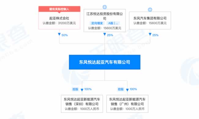 资料显示,东风悦达起亚汽车有限公司成立于1992年9月12日,由起亚株式会社、东风汽车集团有限公司、江苏悦达投资股份有限公司共同组建,三方股权分别为50%、25%、25%。股权转让完成后,东风悦达起亚汽车有限公司变更为起亚株式会社、悦达汽车集团、江苏悦达投资股份有限公司三方持股,各持有50%、25%、25%。据文件显示,悦达汽车集团成立于2021年6月18日,控股股东悦达集团持有70%股份,盐城市国有资产投资集团有限公司持有30%股份。