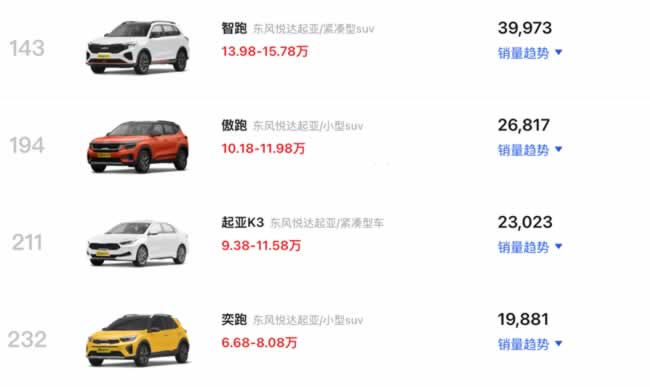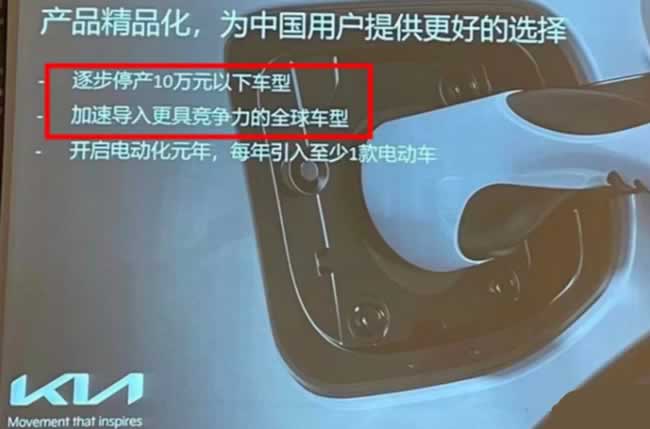 据媒体报道,起亚为了进一步打造精品化产品,加速导入更具竞争力的全球车型,逐步停产10万元以下车型。据了解,东风悦达起亚目前在售10万元以下的车型包括奕跑、焕驰、福瑞迪三款车型。数据显示,2021年起亚奕跑总销量为19881辆,月均销量基本稳定在1600辆上下;福瑞迪销量为15574辆,月销量最高能达到2800辆;焕驰仅为5602辆。针对以上消息,起亚方面予以确认。东风悦达起亚总经理柳昌昇表示,“不再走低价竞争的方式,而是通过产品的竞争力去赢得消费者的认可。未来,售价10万元以下的车型会尽快停产,寻求高质量发展。”