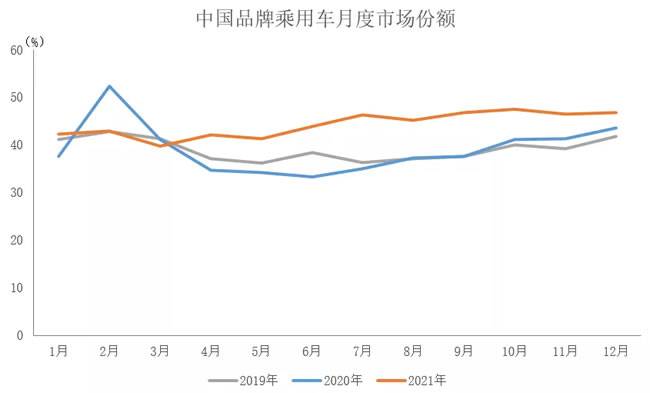 据中国汽车工业协会统计分析,2021年,中国品牌市场表现明显好于大市。