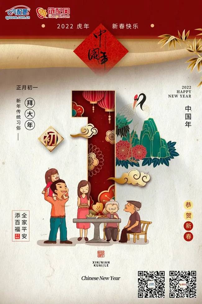 迎春接福,喜气洋洋。今天的重头戏是拜年:“新年好!平安吉祥!”今天还有个重要习俗:放爆竹,放三枚叫“连中三元”,