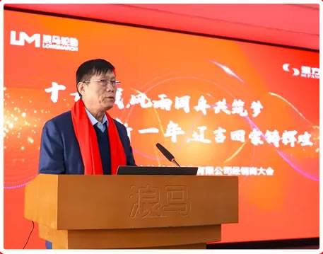 董事长李庆文发表致辞,感谢思方达销售团队陪伴浪马奋斗19年,销量逐年递增。他表示,振兴辽宁我担当,浪马发展您帮忙。浪马的发展离不开每一位经销商的不懈奋斗,期望思方达销售团队与浪马笃行不怠,抢占市场份额,提升浪马轮胎在辽、吉地区的占有率。