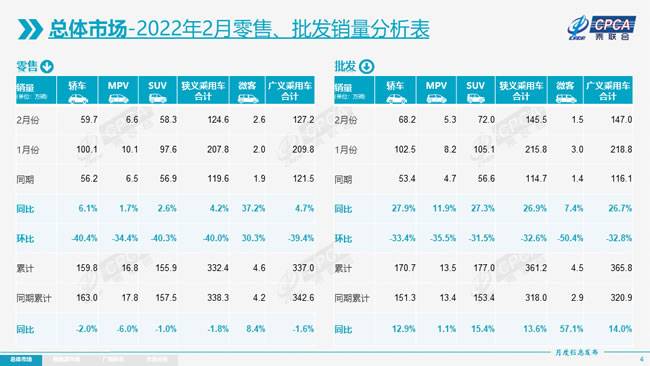 由于春节假期从1月31日开始,但节前生产停线和消费者购车都会提早几天,带来1月的产销丢量较大。今年春节后部分企业开工较早,2月生产因春节因素损失较少,拉动2月零售环比和同比表现折算后都是很好的增长。