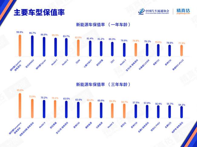 新能源市场保值率分化趋于明显:保时捷、特斯拉等豪华品牌占据榜单头部,榜单中部由国产新势力占据,另外自主品牌比亚迪、荣威在新能源市场上也占有一席之地。