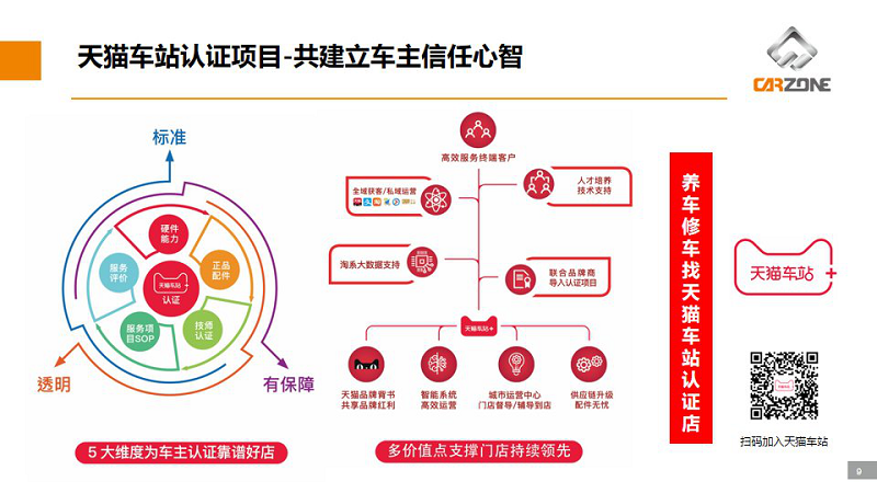 康众汽配结合阿里巴巴的优质资源,于2018年10月全新启动“天猫车站”认证店项目,通过天猫品牌的信任背书,让维修企业可以借助天猫的强大品牌力量,比“隔壁家”更容易获得车主的信任!