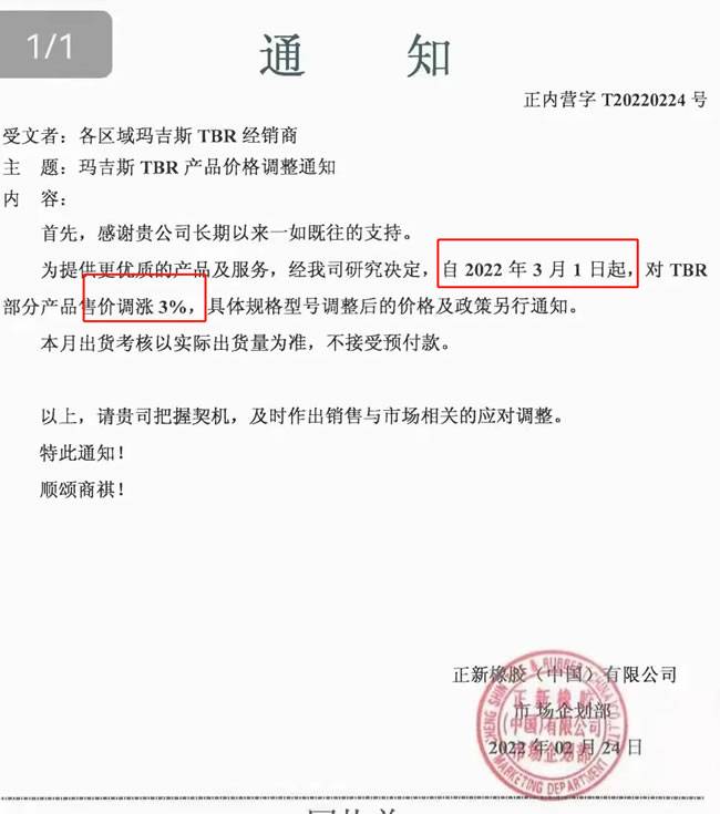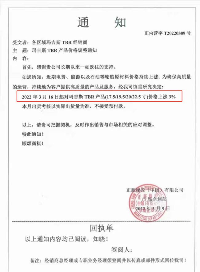 3月16日发布的这4张轮胎涨价通知单,已经是今年2、3月以来第n张....