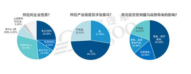 在俄乌局势升级之初,由盖世汽车发起的有近千业内人士参与的调研结果显示,超46.7%参与者表示其从事产业链中并未涉及俄乌两国,但在被问及会否受到俄乌局势带来的影响时,却仅有不到两成参与者坚信不会。