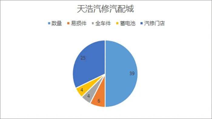 专门做易损件的有13家专门做全车件的有8家专门做蓄电池的有8家专门做润滑油的有12家专门做汽车用品的有25家专门做汽修的门店约20家