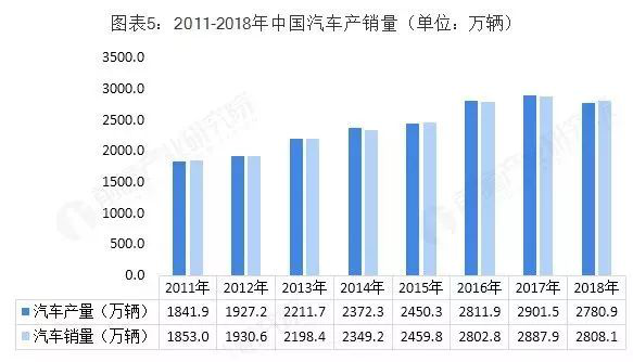 汽车产销量整体提高。汽车行业是一个多层次一体化的行业,能够在一定程度反映国家的经济发展运行情况。近年来,中国经济保持中高速增长,居民收入与消费水平稳步提高,工业化水平逐步提高,中国汽车产销量整体提高。根据中汽协统计数据显示,2011-2017年,我国汽车产销量处于不断增长态势。2018年,我国汽车产量为2780.9万辆,汽车销售为2808.1万辆,销量连续十年蝉联全球第一。但是受到经济增速回落,中美贸易战、消费信心下降以及购置税优惠政策推出的影响,我国汽车产销量均出现小幅回落,其中汽车产量下滑4.16%,汽车销量下滑2.76%。