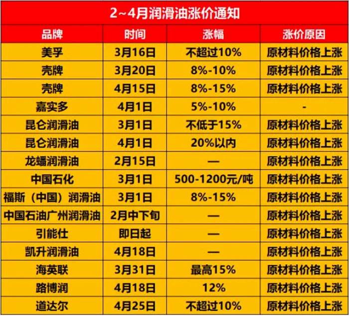 【涨幅15%,润滑油4月迎来疯狂涨价风暴】