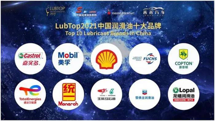 今年LubTop2021中国润滑油十大品牌为:嘉实多润滑油、美孚®润滑油、壳牌润滑油、福斯润滑油、龙蟠润滑油、道达尔能源、统一润滑油、康普顿润滑油、玉柴马石油润滑油、雪佛龙润滑油。