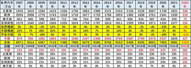 中国汽车市场对世界汽车市场影响力极其巨大。2018年中国汽车占世界30%,2019年下降到29%,但仍具有绝对优势,2020年回升到32%,2021年中国份额保持32%,2022年1-2月中国份额上升到36%。