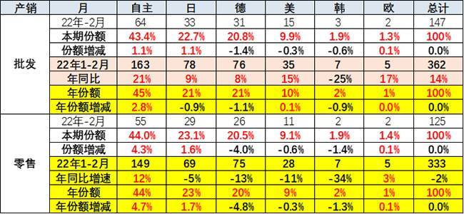 自主品牌份额近期强势增长,目前已经达到批发45%和零售44%的超强表现。