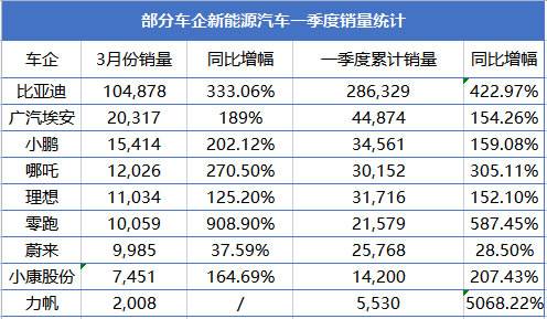 以比亚迪为例,今年3月新能源汽车销量接近10.5万辆,同比增长333%,环比增长18.8%,占一季度整体销量的37%。