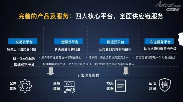 依托沉淀的供应链交易与管理一体化平台、行业绝对领先的车型与配件数据库、贴合多业务场景的创新供应链金融产品,对产业链上下游各主体形成全面赋能,成功实现了“轻资产、重运营”的模式,通过互联网重塑产业链生态,在云端实现高效协同的供应链服务。