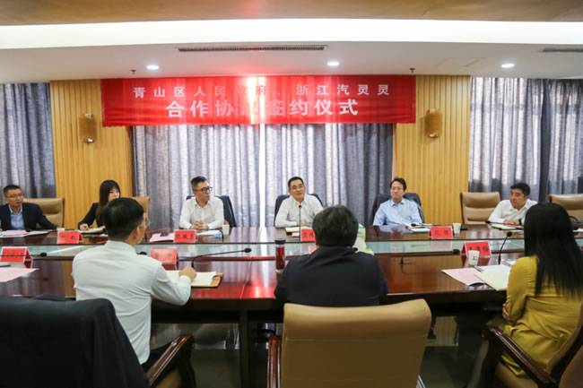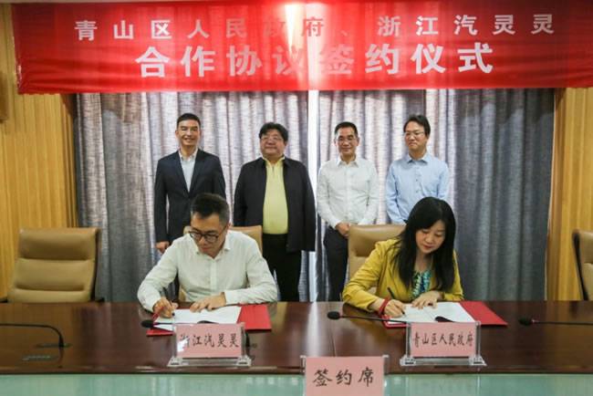 会上,汽灵灵工业互联网公司/科技公司总裁张骏勇,青山区委常委、区政府副区长王清梅进行《合作协议》签约。亚太机电集团有限公司董事长、汽灵灵董事长黄伟潮,浙江汽灵灵科技有限公司副总经理殷强,青山区委书记,化工区党工委书记、管委会主任苏霓斌,市招商办副主任董冲鉴证签约。