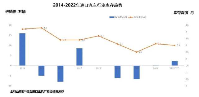 伴随着19-20年供给小于需求,进口汽车全行业库存深度出现明显下滑,2021-2022年供需基本平衡,但销量有所下滑,2月库存深度回升至3.0个月,从历史来看,处于合理偏低水平。