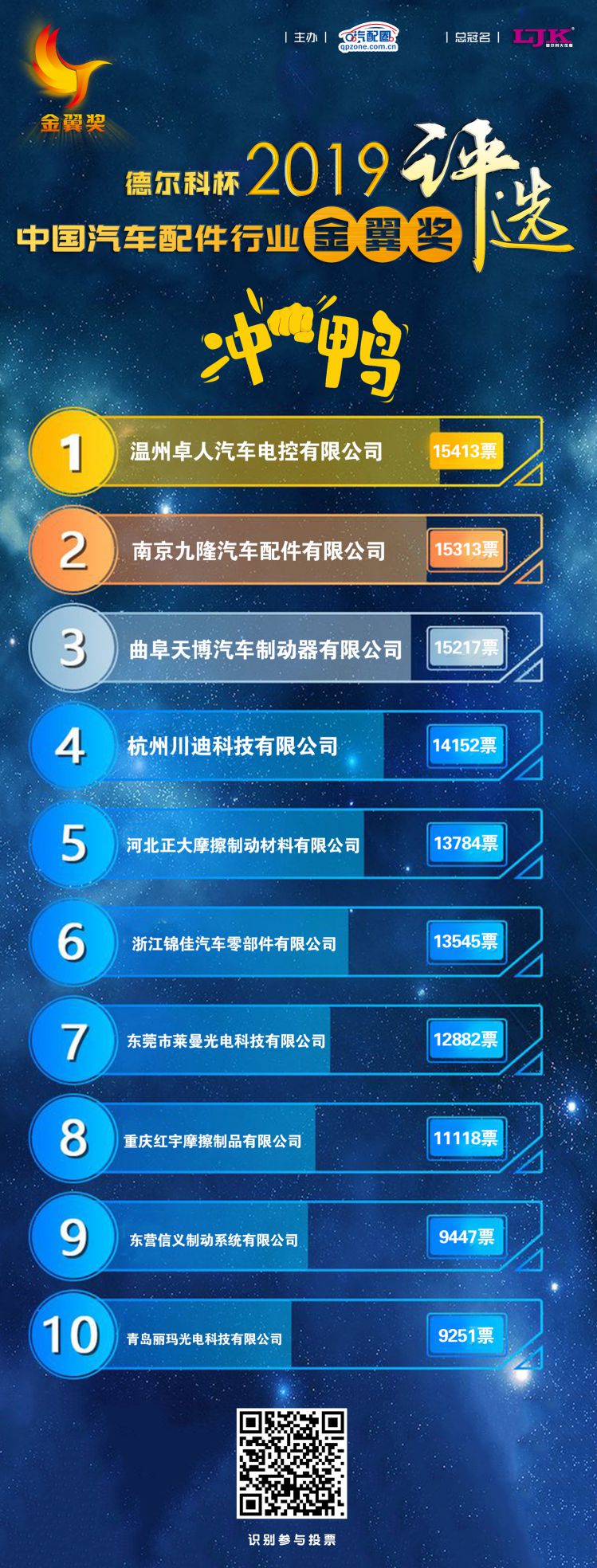 由汽配圈主办,宁波德尔科火花塞制造有限公司独家冠名的“德尔科杯·2019中国汽车配件行业金翼奖评选”活动,正在如火如荼的进行中,自投票活动上线后,便受到全国各地企业的踊跃报名,数以万计的行业同仁都在为心目中的“最佳企业”投票,引发了汽配领域关注和参与的热潮。