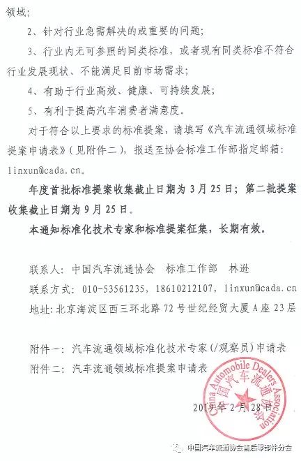 2、标准提案,填写《汽车售后零部件领域标准提案申请表》(见附件二),报送至邮箱:cadap123@qq.com。