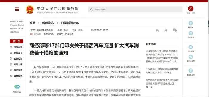 近日,商务部等17部门联合印发《关于搞活汽车流通扩大汽车消费若干措施的通知》,聚焦支持新能源汽车购买使用、活跃二手车市场、促进汽车更新消费、推动汽车平行进口发展、优化汽车使用环境、丰富汽车金融服务等,提出了6个方面、12条政策措施。
