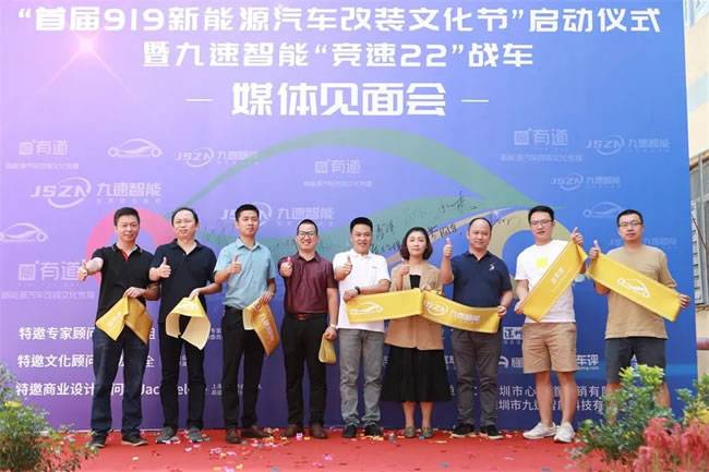 9月15日上午9点19分,首届《919新能源汽车改装文化节》启动仪式暨九速智能“竞速22”战车媒体见面会在深圳举行。选择这个时间点(9时19分)开始活动,足以感受到主办方满满的仪式感。活动现场,广东广播电视台、深圳晚报、汽车之家、懂车帝、新车评、慧聪汽车、车主社区、每日侃车等媒体,以及心有道公司&新能源车改圈平台创始人张远、九速智能COO蒋能、九速智能CEO朱芳海、九速智能CPO陈红伟等共同开启仪式见证首届《919新能源汽车改装文化节》正式起航。