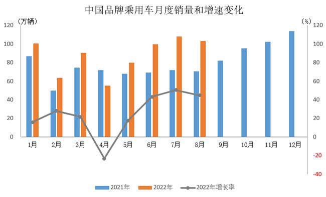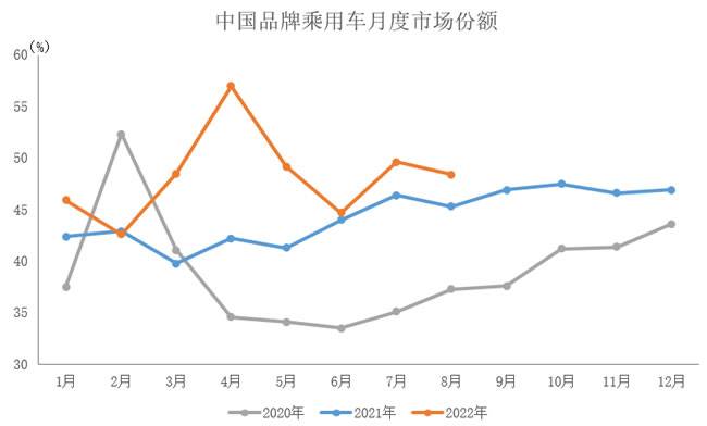 据中国汽车工业协会统计分析,2022年8月,中国品牌乘用车市场依然延续良好表现。