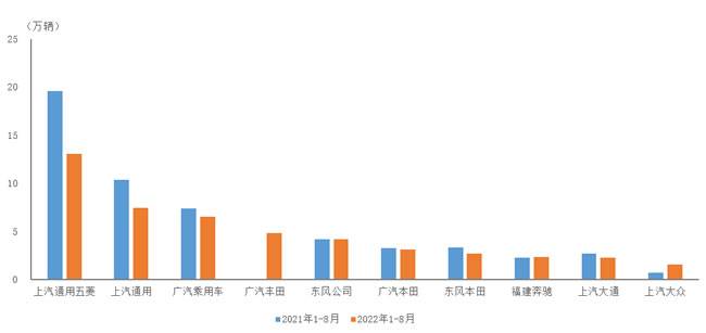 据中国汽车工业协会统计分析,2022年1-8月,销量排名前十位的MPV生产企业共销售47.8万辆,占MPV销售总量的85.7%。