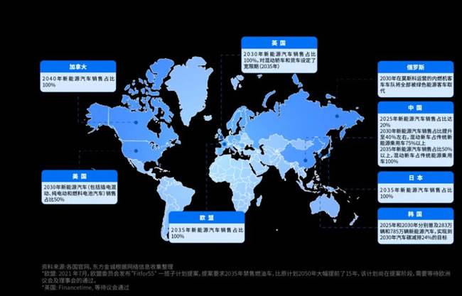 国家统计局数据显示,前8月,社会消费品零售总额累计增速由负转正。汽车消费在社会消费品零售总额中占比约为10%,在本次政策下,相信会继续促进消费潜力释放、稳定汽车行业产业链供应链。当前,新能源汽车发展已呈现出从政策驱动转向市场拉动新发展阶段。为什么这么说?政策加持了很多年,也攻克了重重问题,也是趋势发展。我们来搜集,根据国际能源署(IEA)《全球电动汽车展望2021》政策方面,已有超过20个国家立法制定了全面电动化时间表或颁布了燃油汽车禁令,8个国家加上欧盟宣布了碳中和承诺。