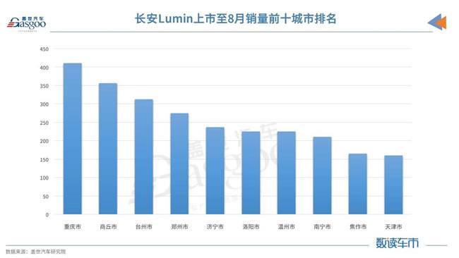 从Lumin销往的城市看,其销量前十城市依次是重庆、商丘、台州、郑州、济宁、洛阳、温州、南宁、焦作、天津,主要是二三四线城市,而这些城市也是其他微型车销量的腹地。