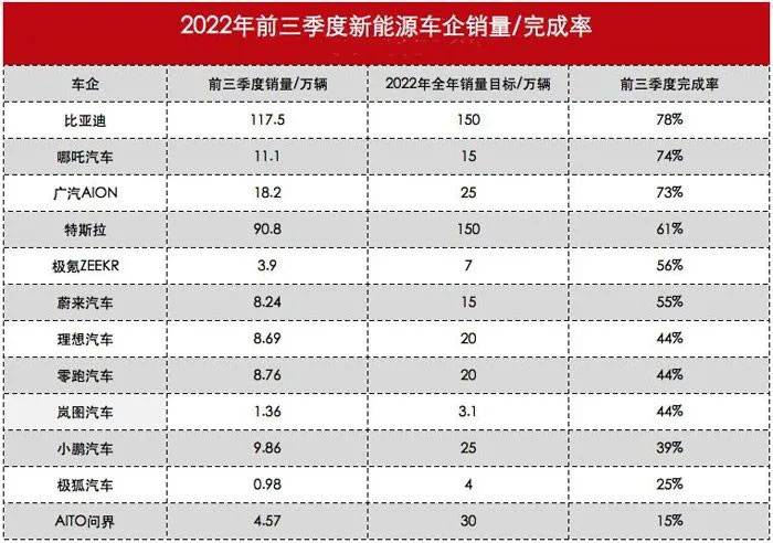 【新能源车企前三季销量榜公布,多车企不达标】