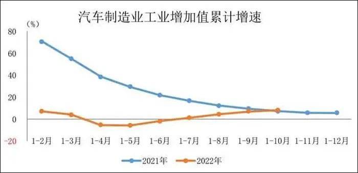 【2022年1-10月汽车制造业工业增加值较快增长】