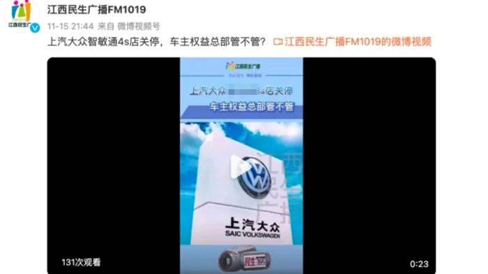最近,江西民生广播报道了一则南昌一家上汽大众4S店突然跑路的事件,这家4S店成立于2020年5月,在当地颇有名气,今年10月下旬有车主发现该4S店售后电话打不通,店面大门紧锁,店里无人,引发车主们持续投诉。目前,该4S店跑路原因不明,上汽大众官方也还未给出解决措施。